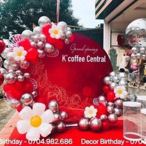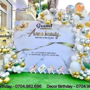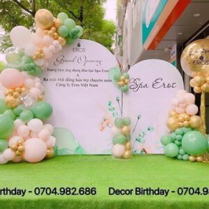 Những chi tiết, phụ kiện đi kèm được sắp xếp trang trí hợp lý tạo nên một backdrop khai trương vừa đẹp vừa phù hợp.